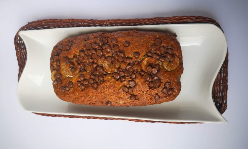 Delicioso panqué con plátano, ideal para compartir una tarde de café, y sea solo, con amigos o pareja. El panqué es grande y rinde aproximadamente 8 rebanadas. Además puedes agregarle chispas o nuez para complementar su sabor.